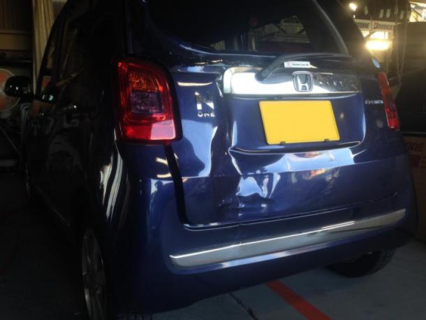 自宅駐車場内にて、停めてある車の脇に入ろうとしたところ、雨で滑ってハンドル操作をあやまり、家族所有の車後方部にバイクで接触。